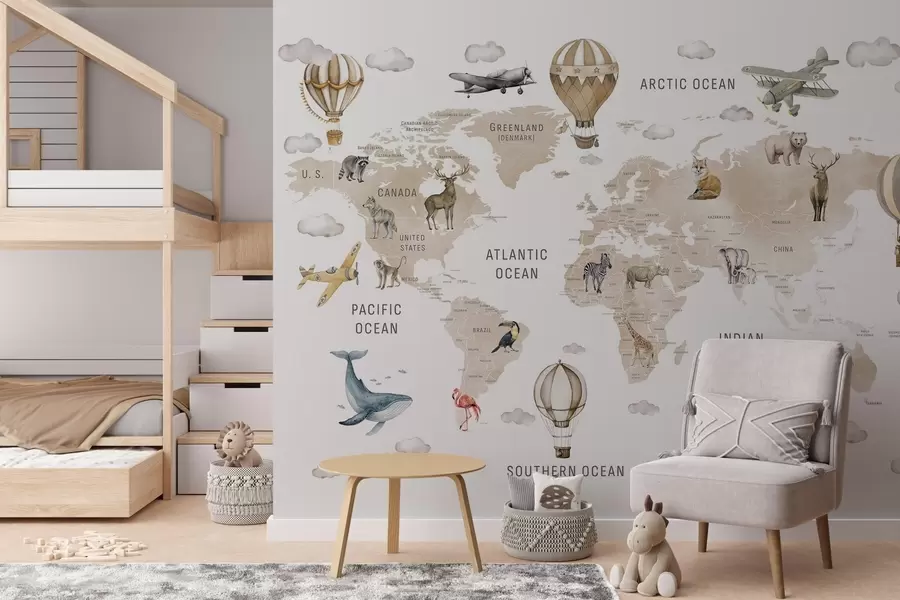 Lindo león, conejo, oso e hipopótamo entre las hojas