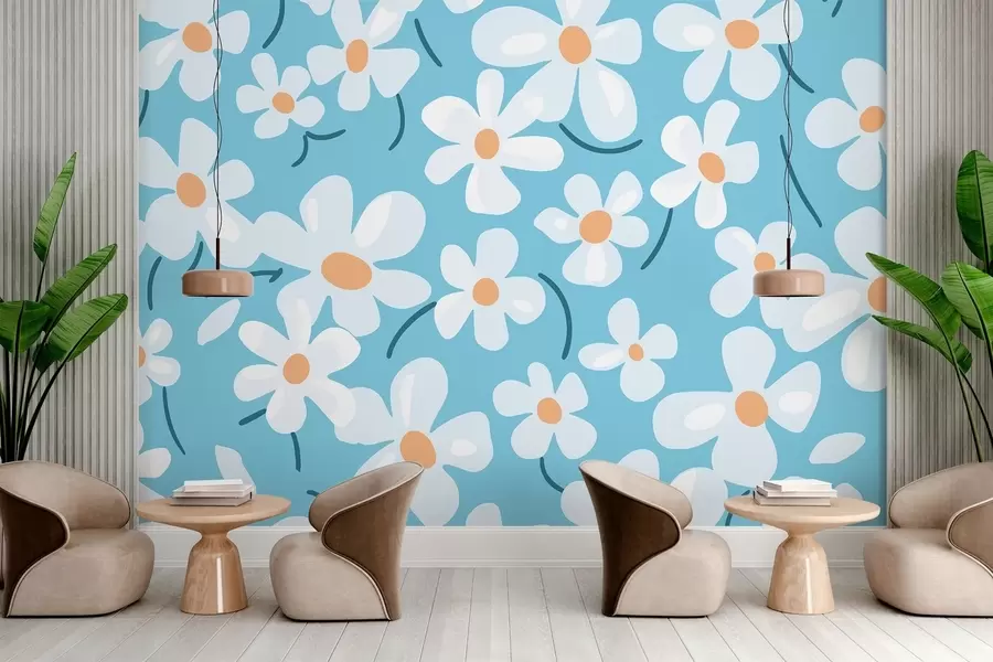 Papel pintado en estilo vitral con la imagen de dos pájaros de calibre entre hojas y flores
