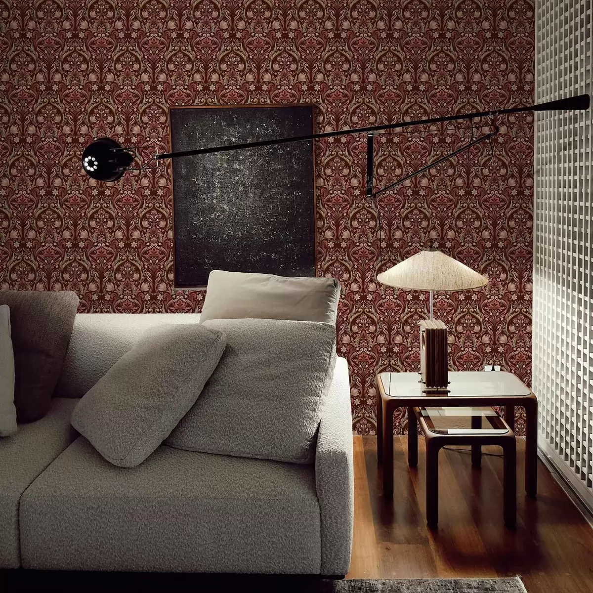 Papel pintado Adorno de tulipán, fondo burdeos intenso a00827v2