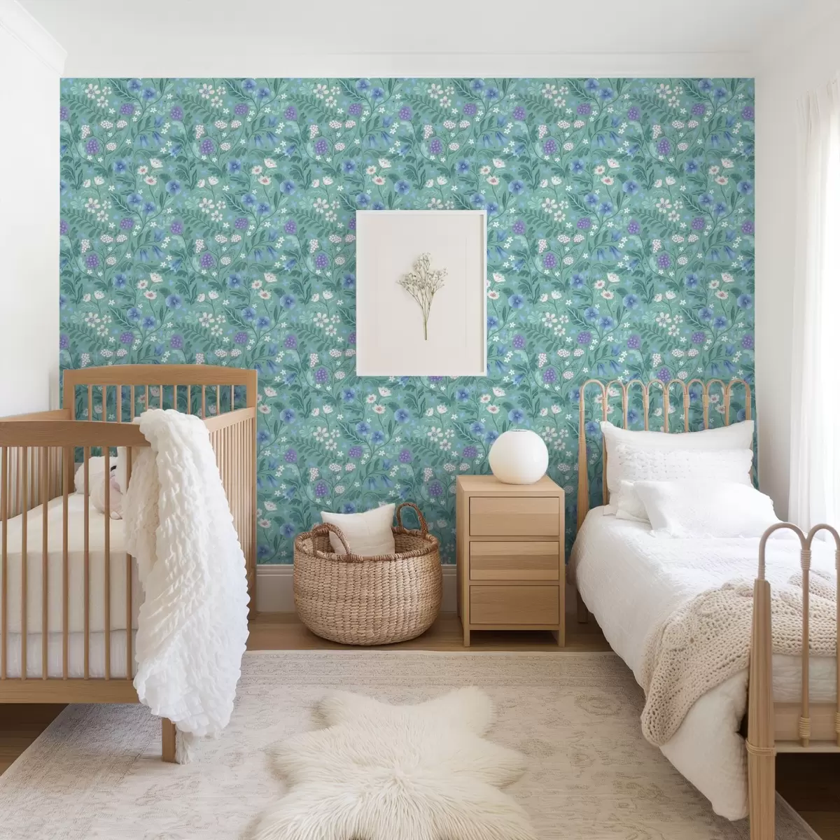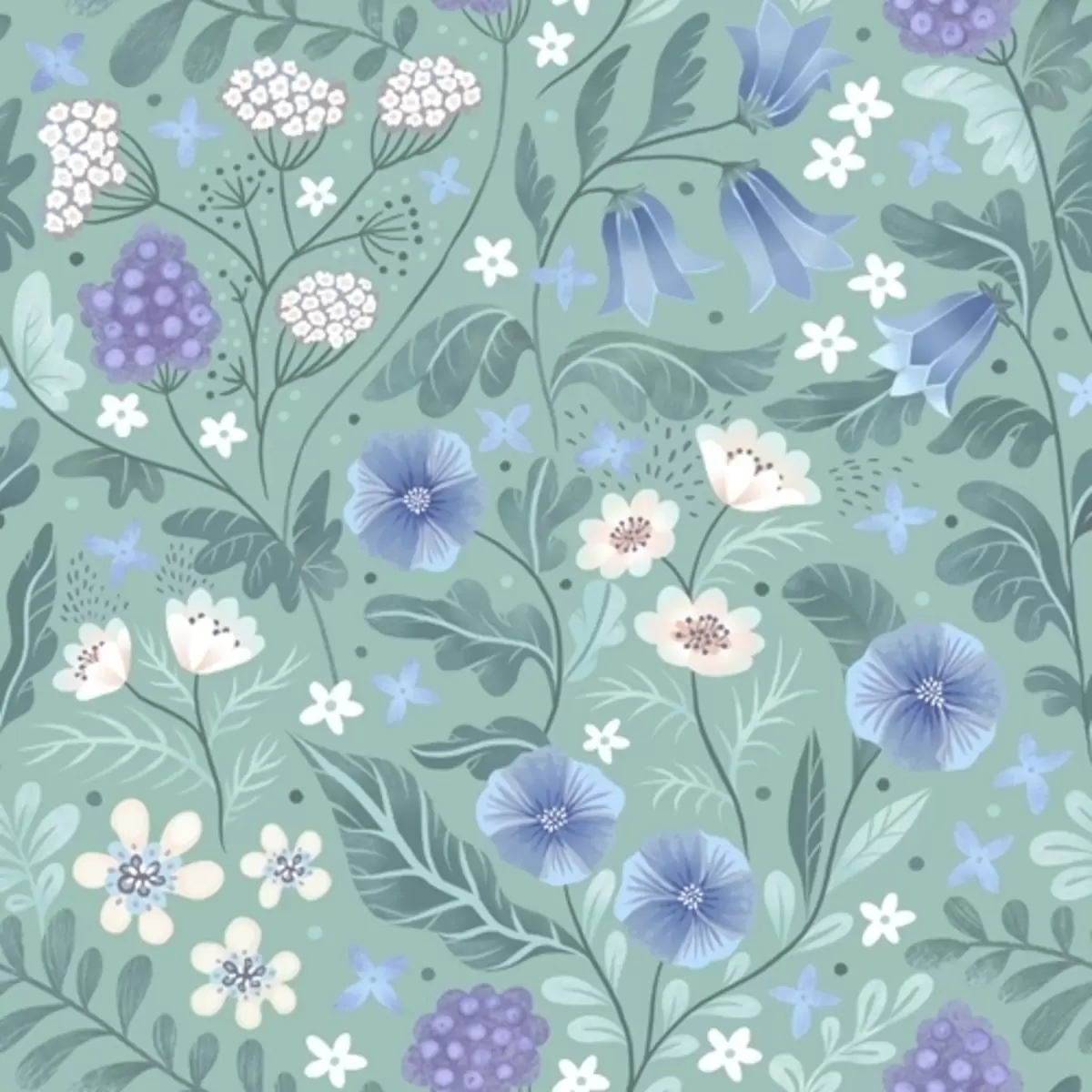 Fotomurales Flores silvestres y bayas sobre un suave fondo menta Nr. a00849