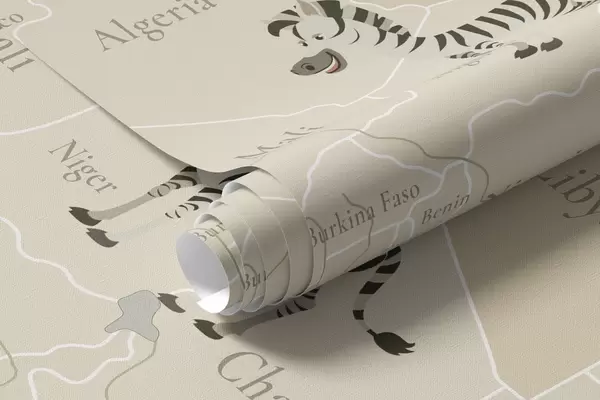 Fotomurales Mapa mundial infantil con animales, aviones y globos aerostáticos. En inglés. Color beige. Nr. c00003en