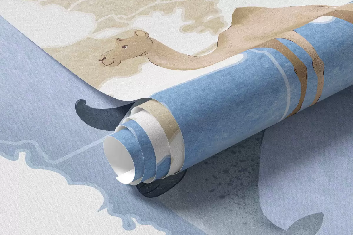 Fotomurales Un mapa azul con estilo de acuarela en el que aparecen animales. Etiquetas en inglés Nr. c00012env1