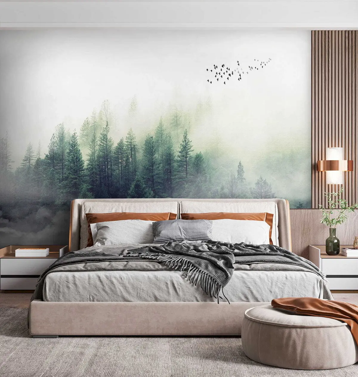 Fotomurales Bosque y pájaros en la niebla. Nr. u10882