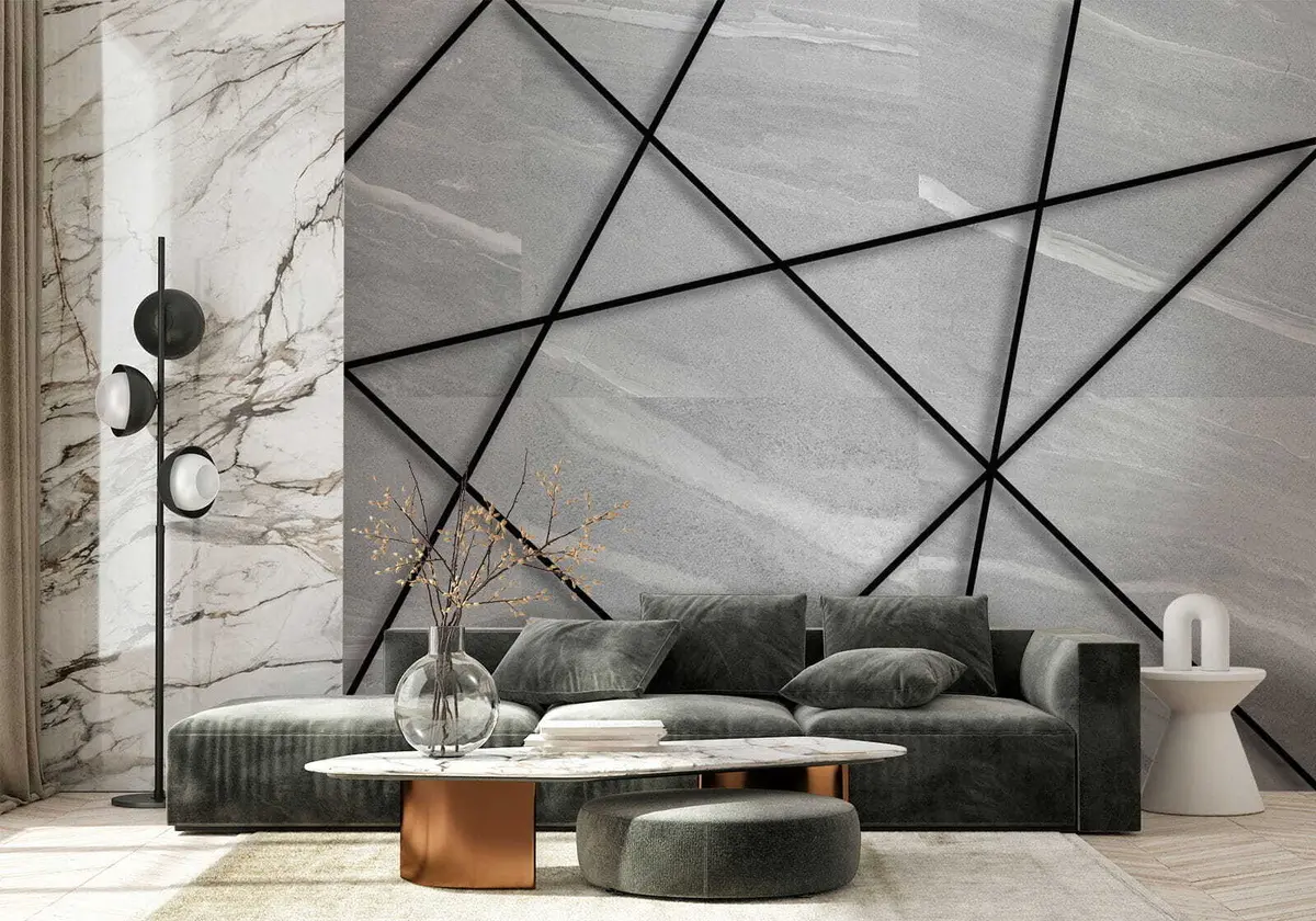 Fotomurales Mármol gris y líneas negras. Nr. u16341