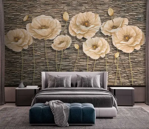 Fotomurales Flores en el fondo de un muro de piedra Nr. u41855