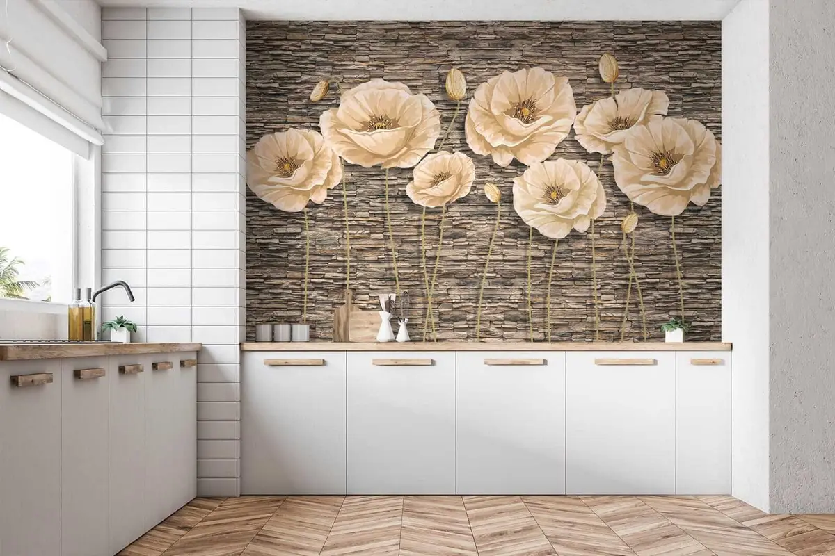 Fotomurales Flores en el fondo de un muro de piedra Nr. u41855