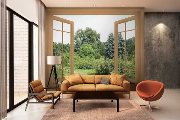 Fotomurales Vista desde la ventana al bosque Nr. u60673