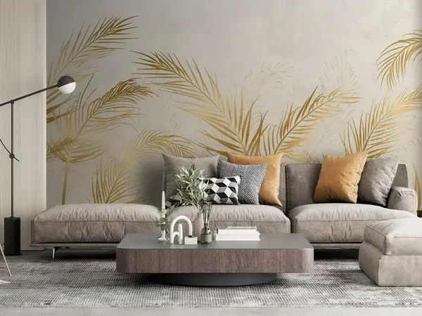 Fotomurales Palmera amarilla zorro sobre fondo gris, hojas de helecho Nr. u72114
