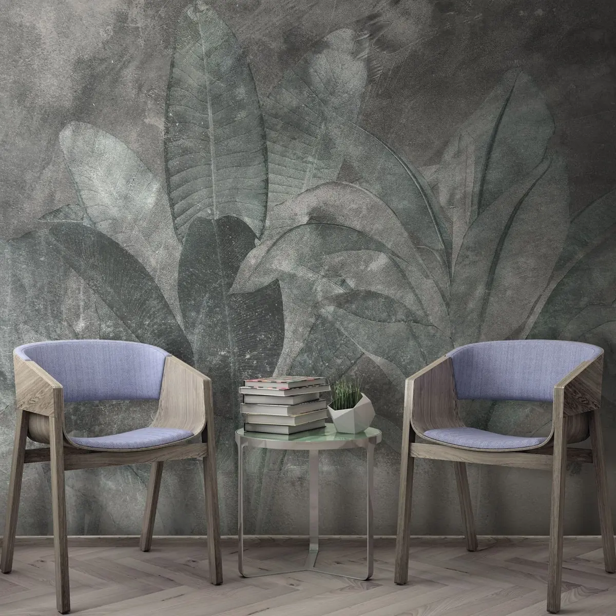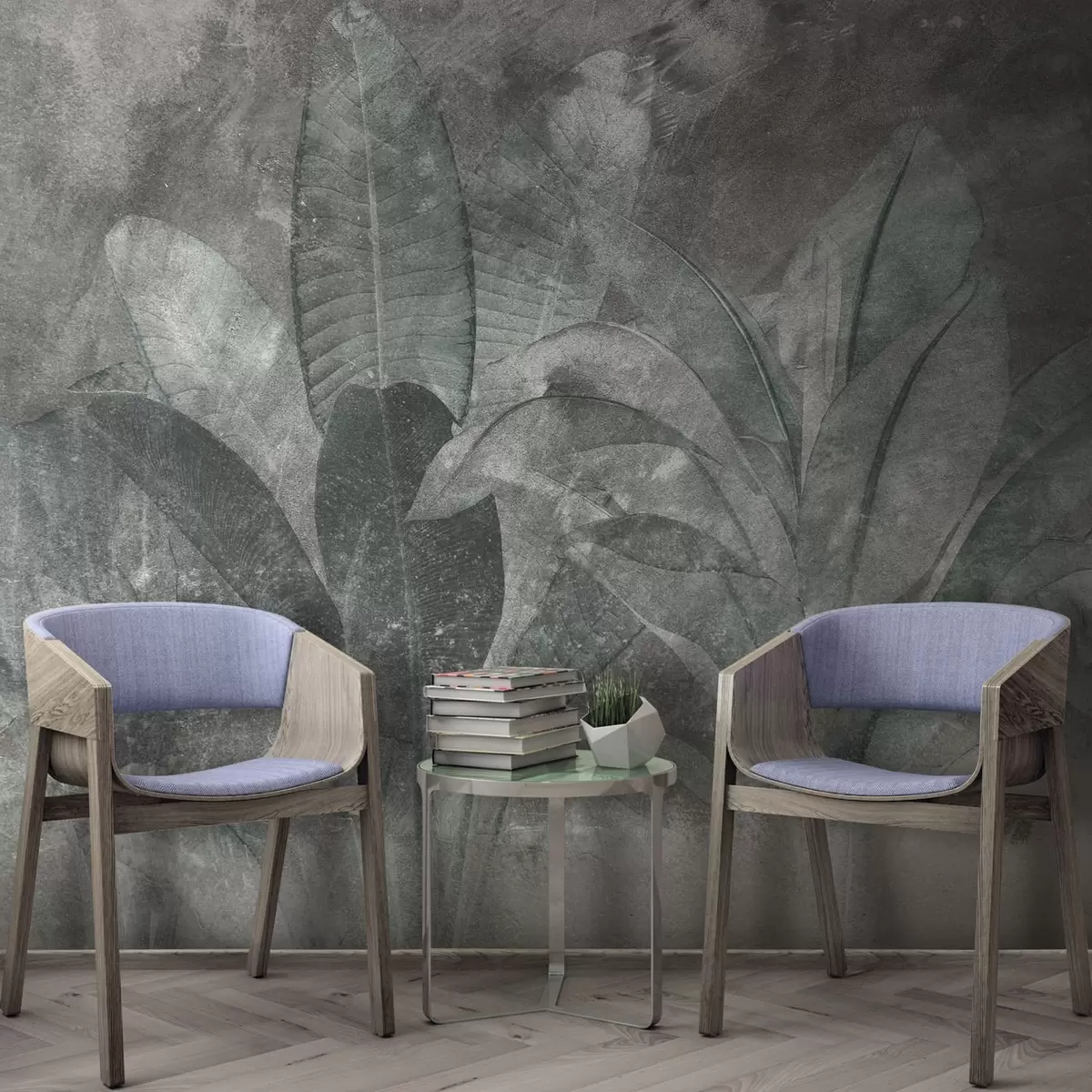 Fotomurales Hojas de plátano sobre un fondo de piedra Nr. u73884