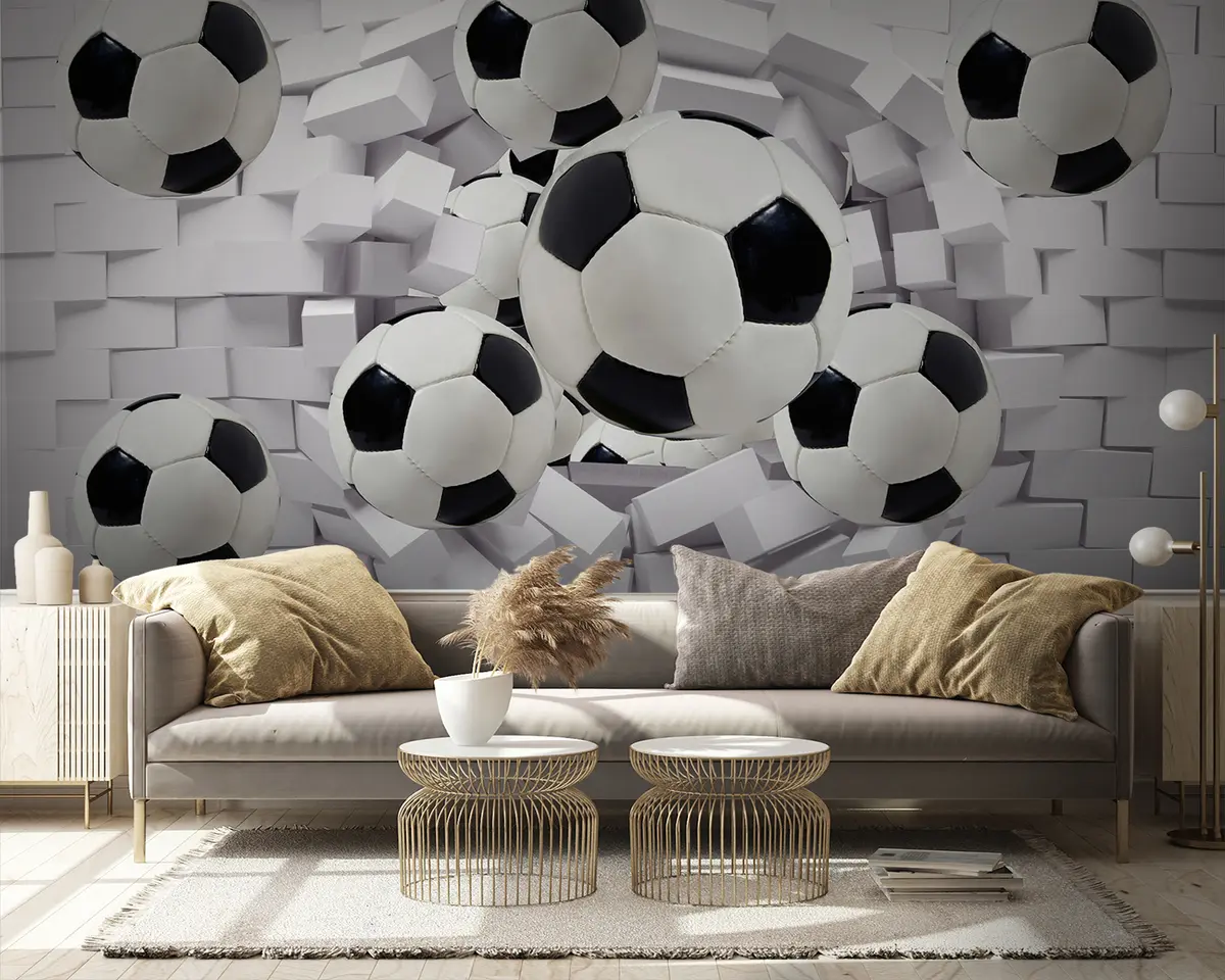 Fotomurales Balones de fútbol en el fondo de una pared de ladrillos Nr. u94958