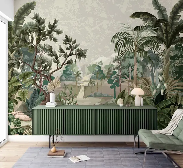 murales de pared Selva con rio y palmeras u95915