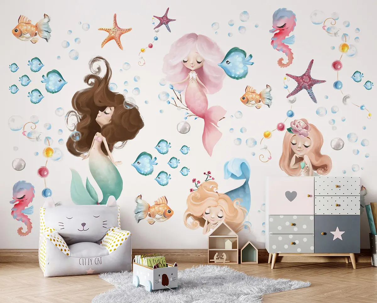 Fotomurales Sirenas y peces de acuarela. Nr. u96868