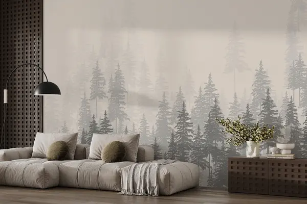 murales de pared Ilustración monocromática de un bosque siempre verde u99076