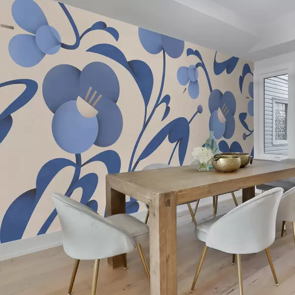 Fotomurales Estampado botánico con flores azules decorativas sobre fondo beige Nr. u99196v7
