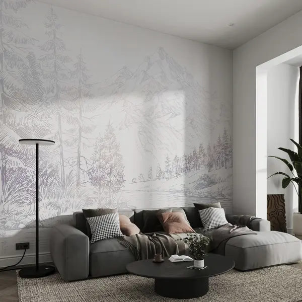 Fotomurales Paisaje de montañas alpinas, minimalismo, colores púrpura Nr. u99569v1