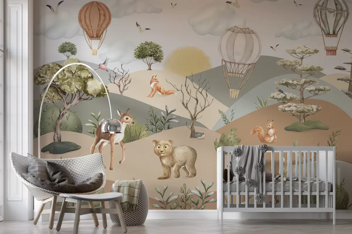 Fotomurales Claro del bosque con lindos animales y globos. Nr. w00636