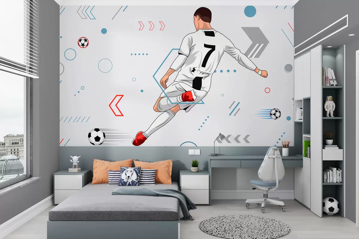 Fotomurales Fondo de pantalla con futbolista y atributos futbolísticos. Nr. w00688