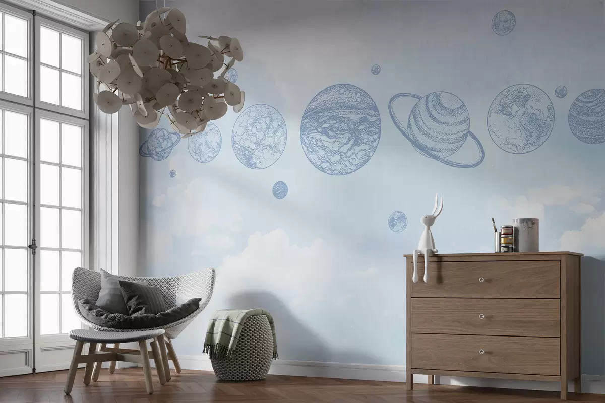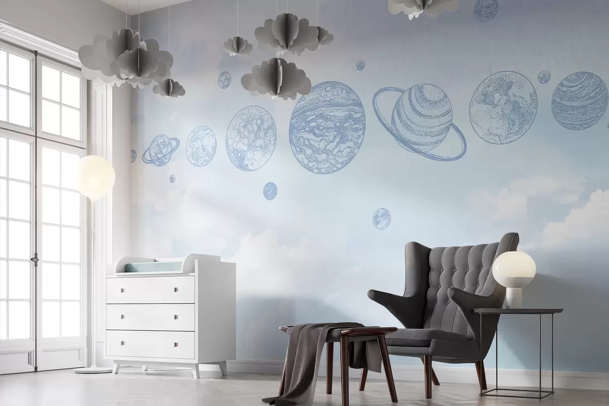 Fotomurales Planetas flotantes en un cielo etéreo, nublado y pastel Nr. w00738