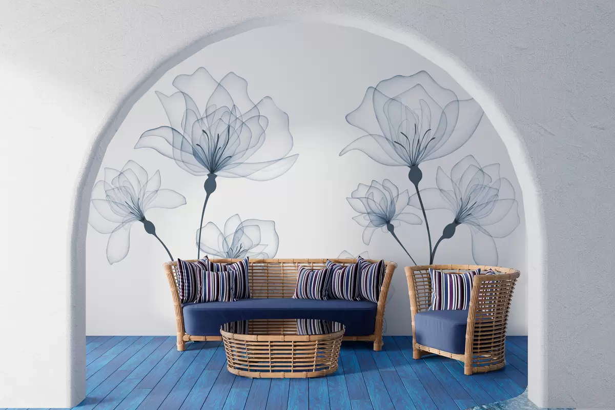 Fotomurales Delicadas flores de acuarela azul Nr. w00744v1