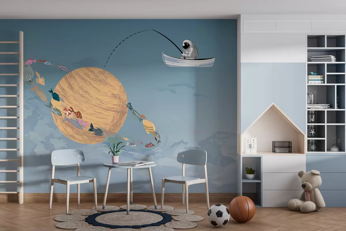 Fotomurales Luna astronauta y pez en azul. Nr. w00869v1