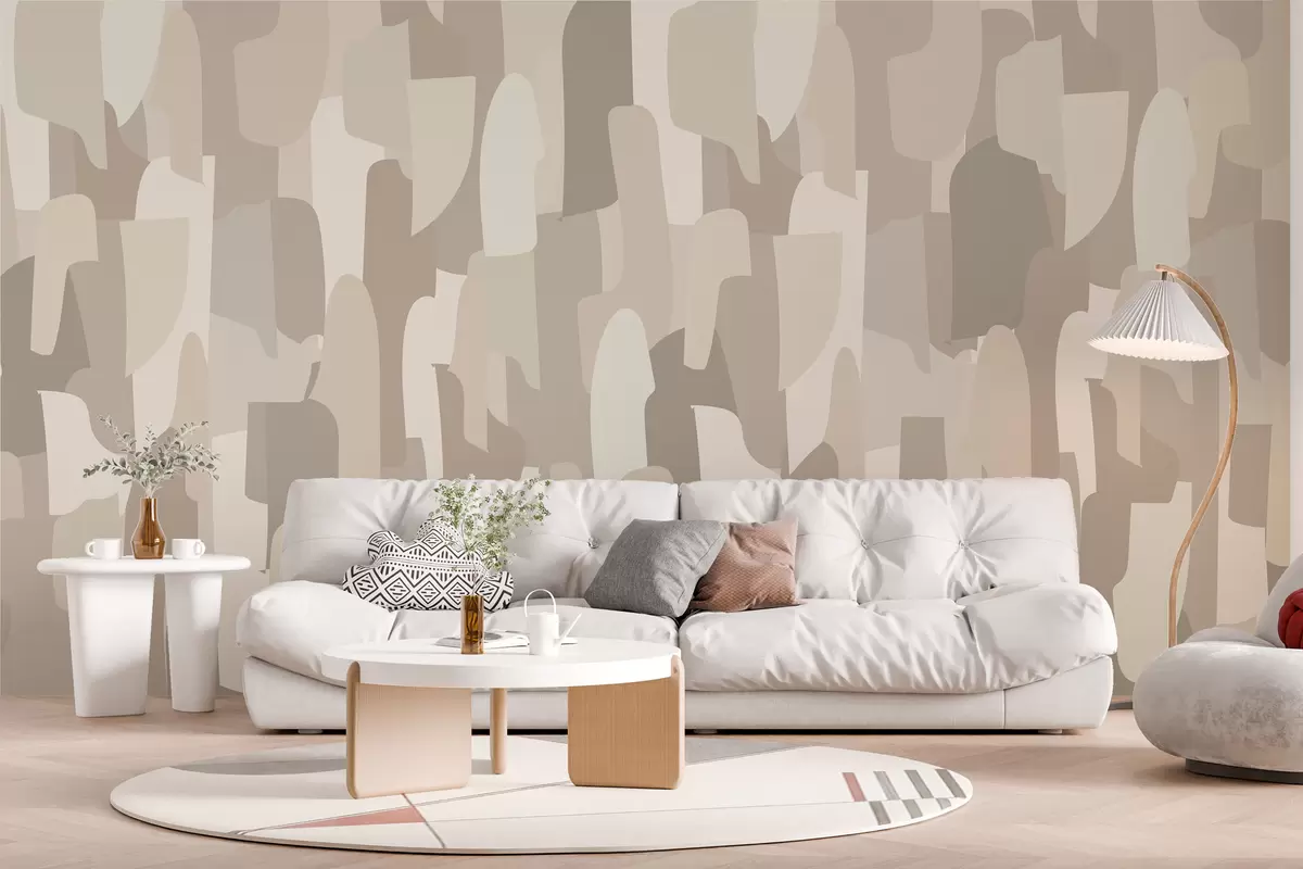Fotomurales Papel pintado de arte moderno abstracto en tonos beige que imita piezas de colores para un diseño interior elegante Nr. w00987