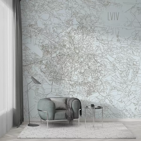 murales de pared Mural de pared con retrato de la ciudad de Lviv sobre fondo azul claro  w01023