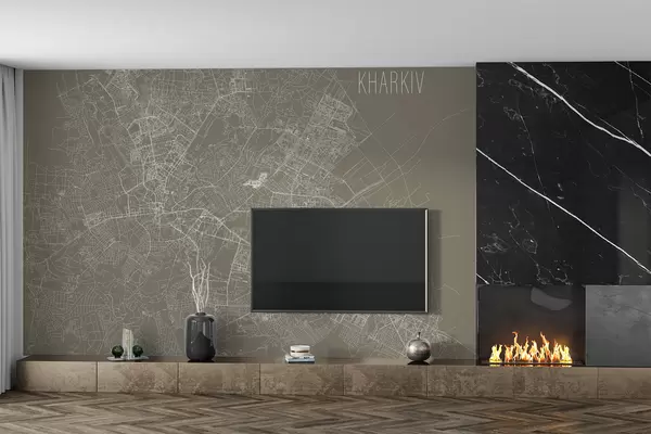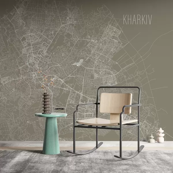 Fotomurales Mapa ampliado Mural de pared con retrato de la ciudad de Járkov sobre fondo marrón Nr. w01024v1