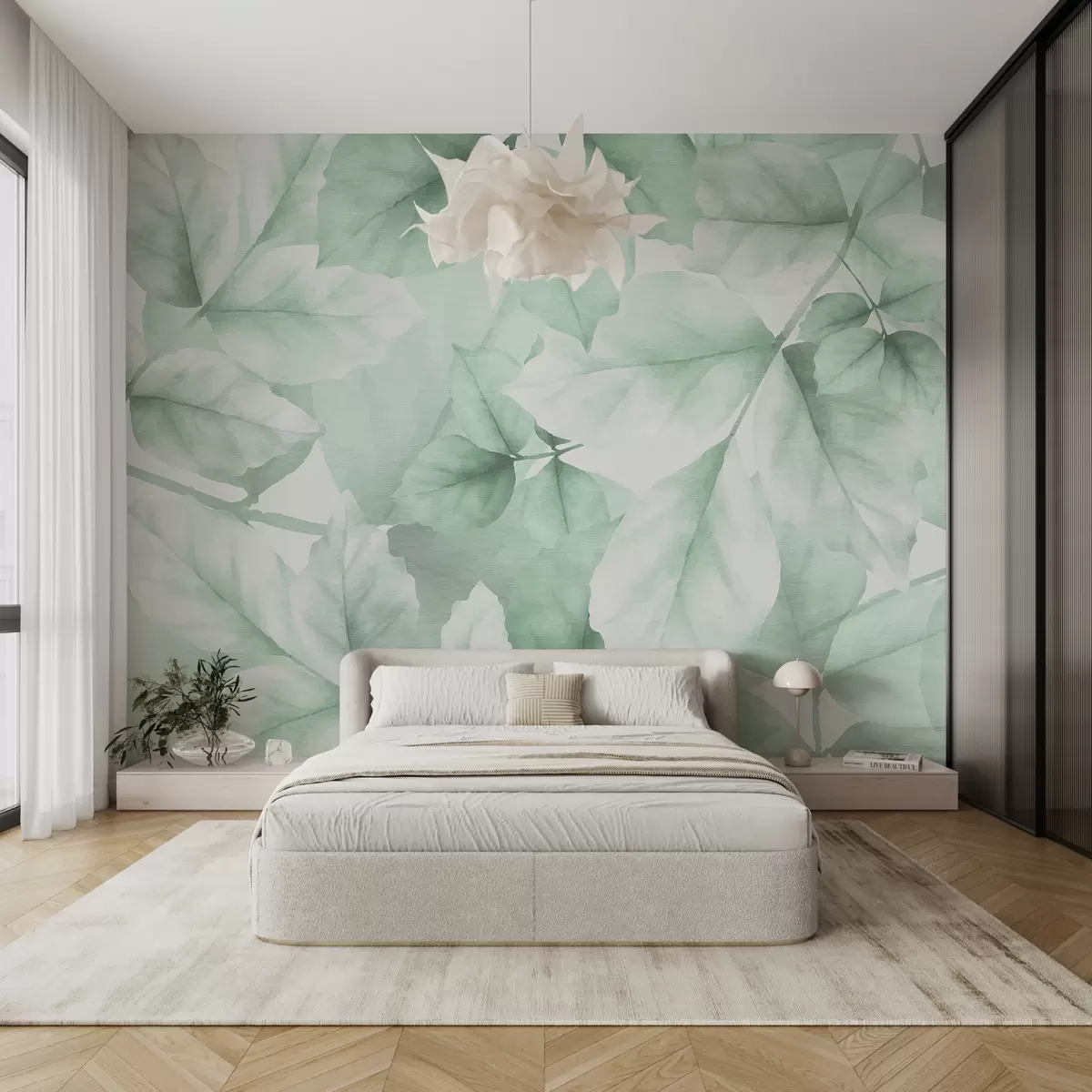 Fotomurales Papel pintado texturizado con grandes hojas en tonos verdes pastel Nr. w01090v3
