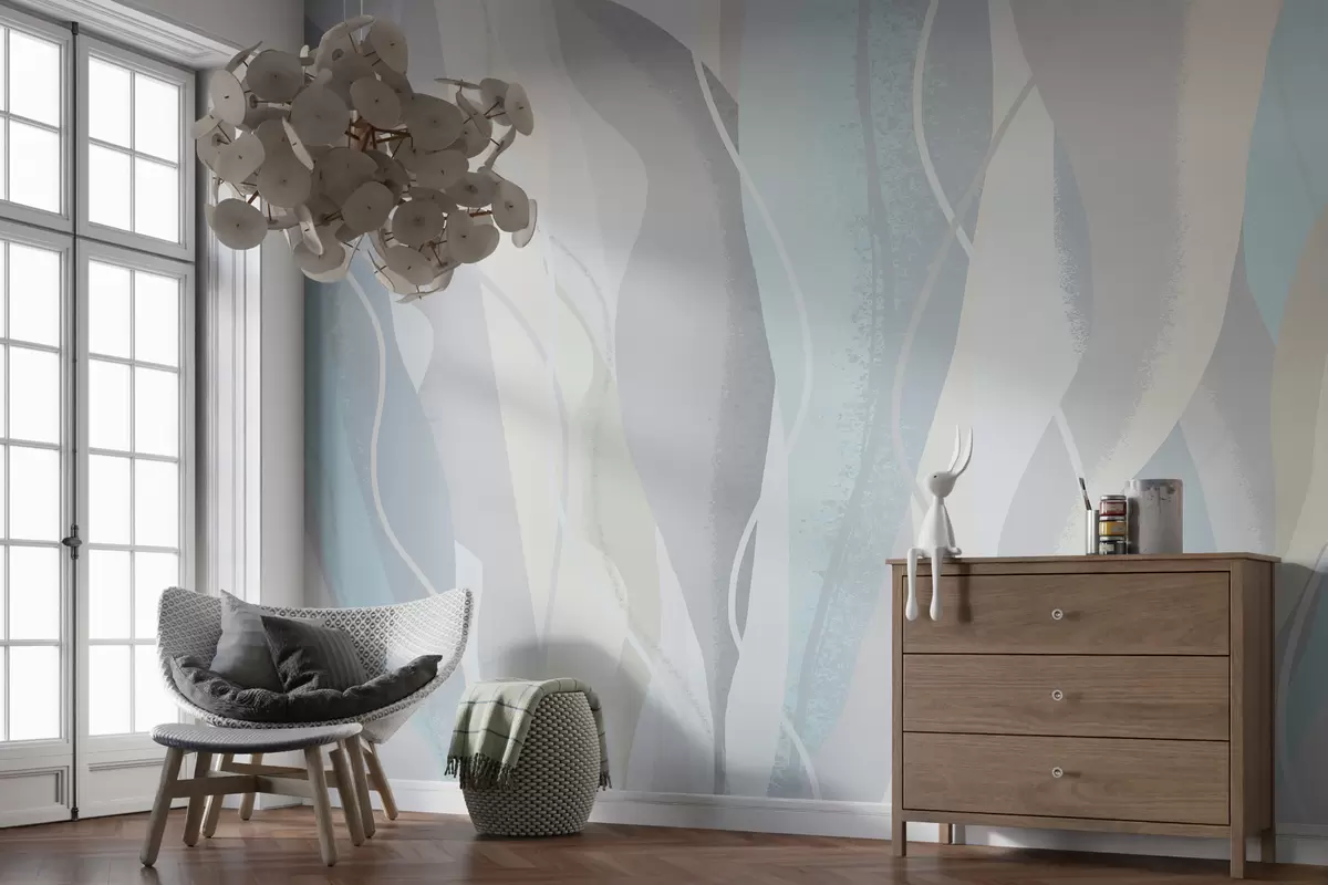 Fotomurales Papel pintado moderno abstracto de estilo ecológico en colores fríos y cálidos Nr. w01124