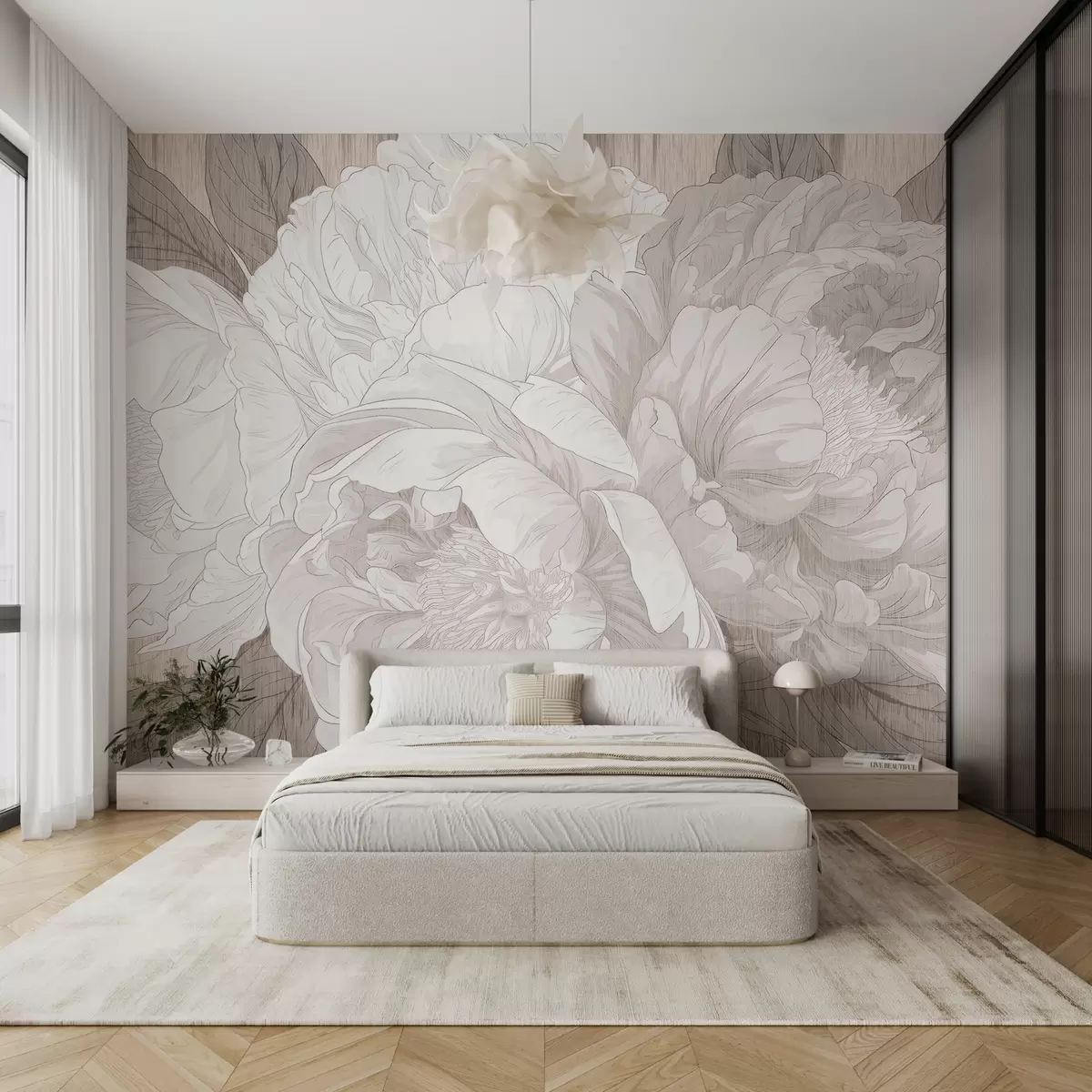 Fotomurales Grandes flores de peonía texturizadas en tonos beige Nr. w01141