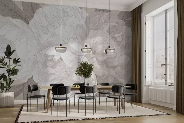 Fotomurales Grandes flores de peonía texturizadas en tonos beige Nr. w01141