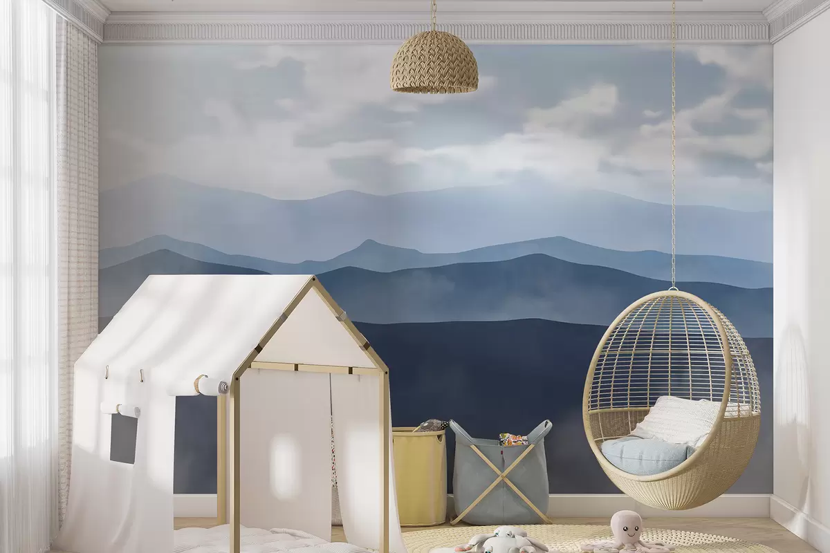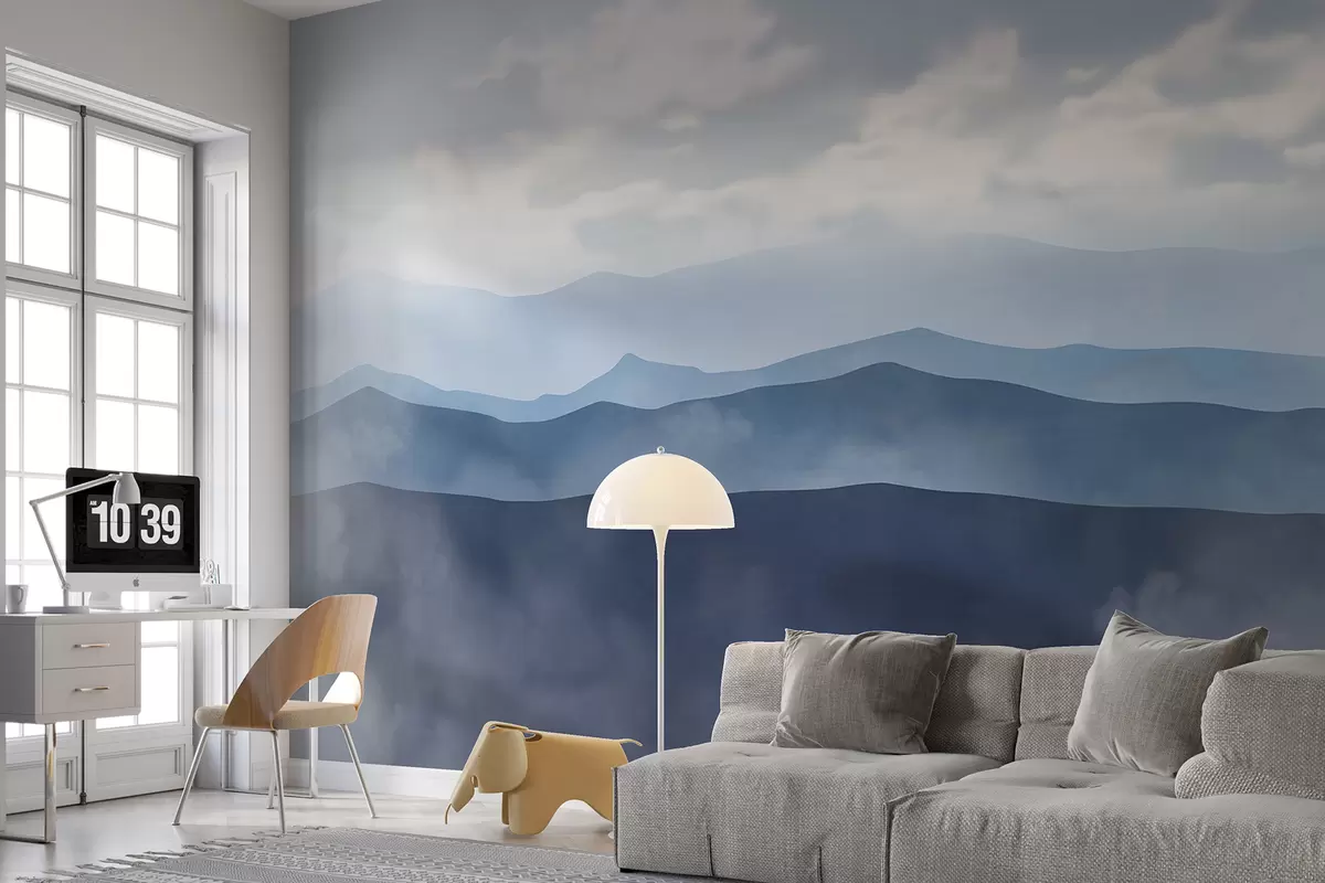 Fotomurales Paisaje montañoso minimalista brumoso con colinas y cielo nublado Nr. w01317