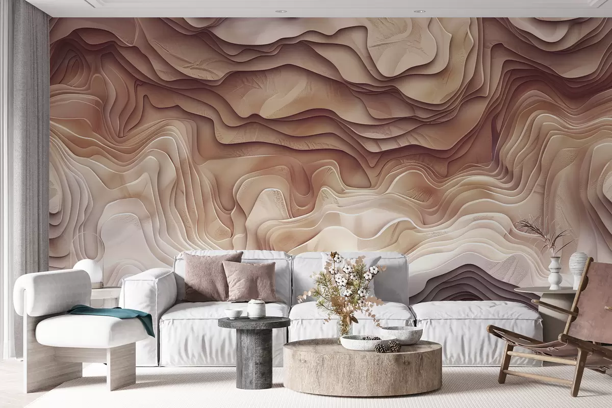 Fotomurales Mapa topográfico 3D con contornos de relieve en tonos rosa claro Nr. w01337