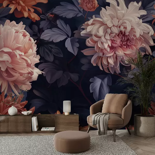Fotomurales Elegante composición de crisantemos en tono morado. Nr. w01431v1