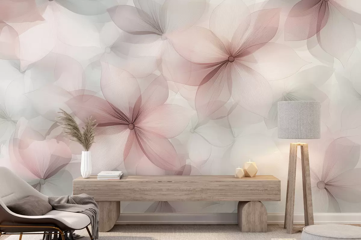Fotomurales Composición floral, colores suaves rosa y gris, patrón de flores. Nr. w01446v1