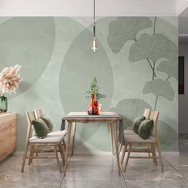 murales de pared Hojas de ginkgo grandes y geometría de color verde. w01465v2
