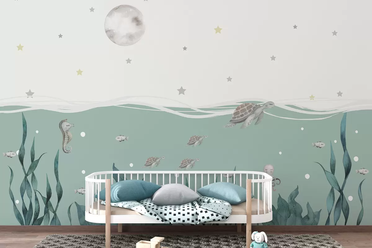 Fotomurales Motivo marino con tortugas, caballito de mar, pez y luna llena Nr. w01521