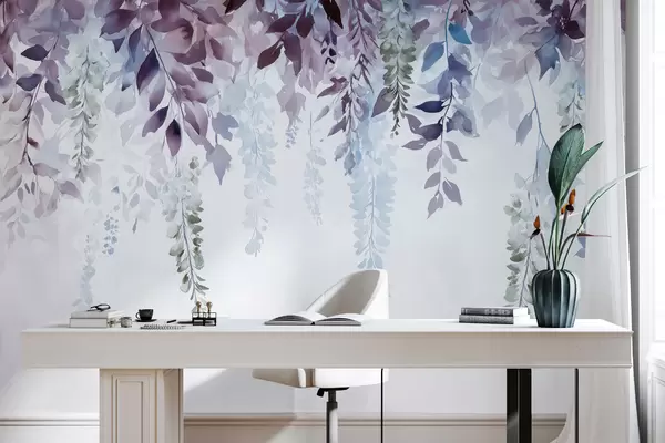 Fotomurales Adorno de flor de glicina, floral, acuarela, colores azul y morado Nr. w01545v1