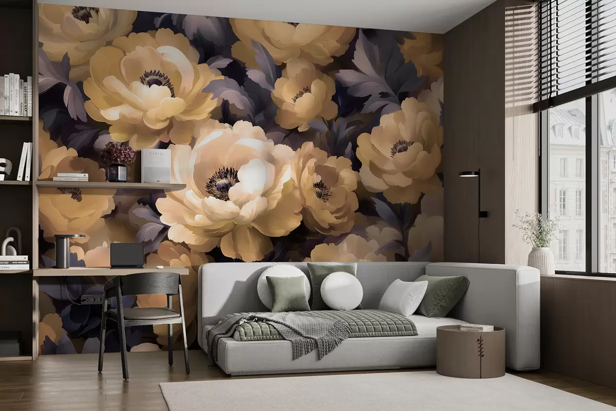 Fotomurales Pintura al óleo de estilo floral basada en el color beige y morado Nr. w01581