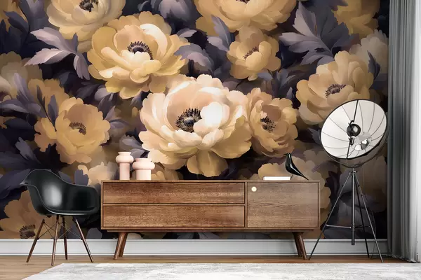 Fotomurales Pintura al óleo de estilo floral basada en el color beige y morado Nr. w01581