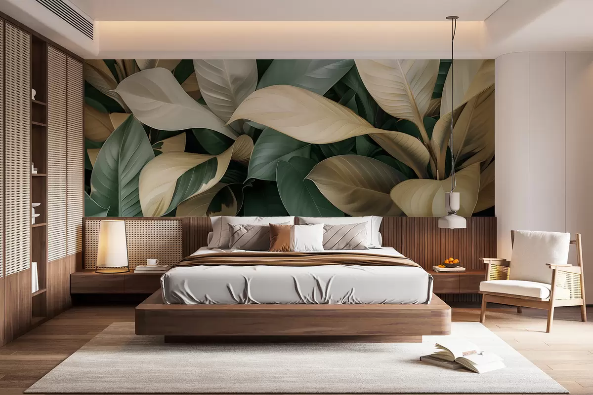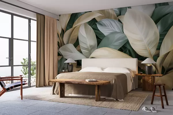 Fotomurales Grandes hojas tropicales en colores verde y beige Nr. w01587v1