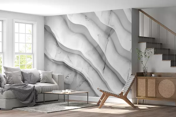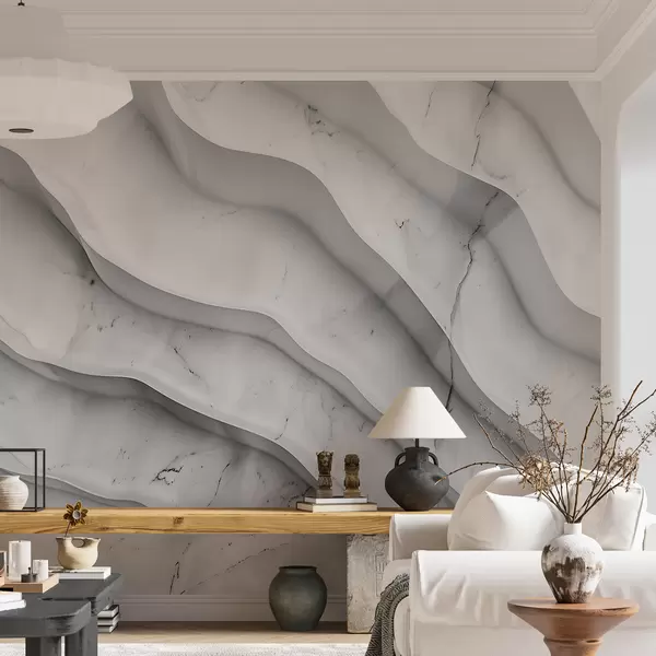 Fotomurales Composición abstracta de texturas suaves y onduladas similares al mármol en tonos claros de blanco y gris Nr. w01588