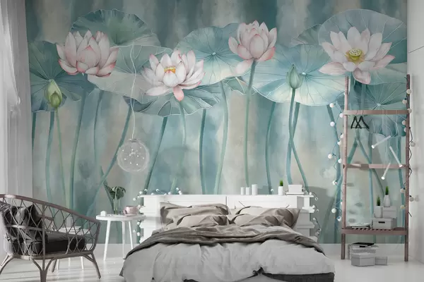 Fotomurales Flores y hojas de loto en una pared grunge Nr. w01622