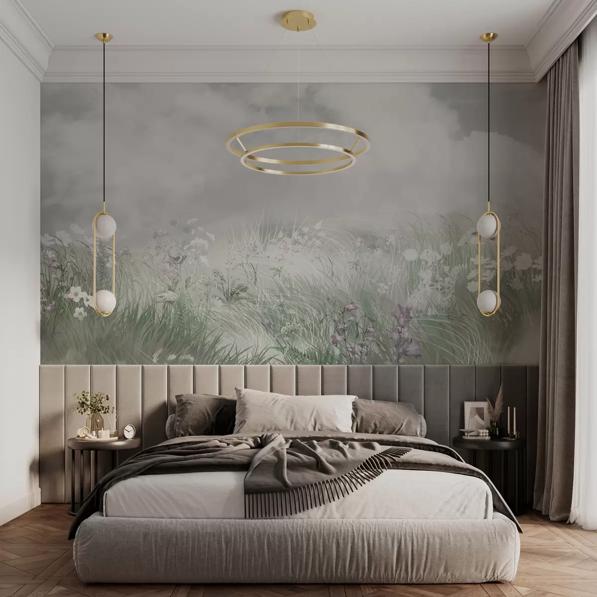 Fotomurales Flores silvestres y hierbas con cielo gris y nubes Nr. w01624v3