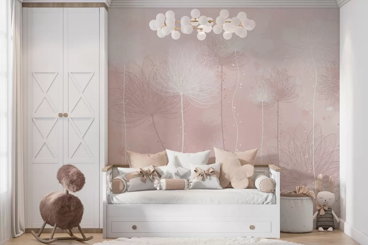 Fotomurales Delicadas flores sobre un delicado fondo rosa Nr. w01645v3