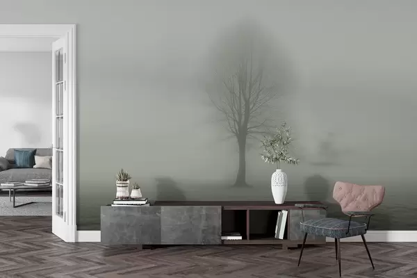 Fotomurales Árbol en la niebla de color verde oscuro Nr. w01660