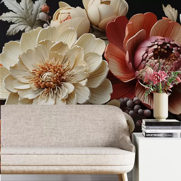 Fotomurales Flores grandes,peonias,fondo oscuro,flores brillantes Nr. w01662