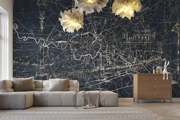 Fotomurales Mapa de la ciudad de Roma, dibujo lineal, arquitectura, Italia, colores oscuros Nr. w01698v1