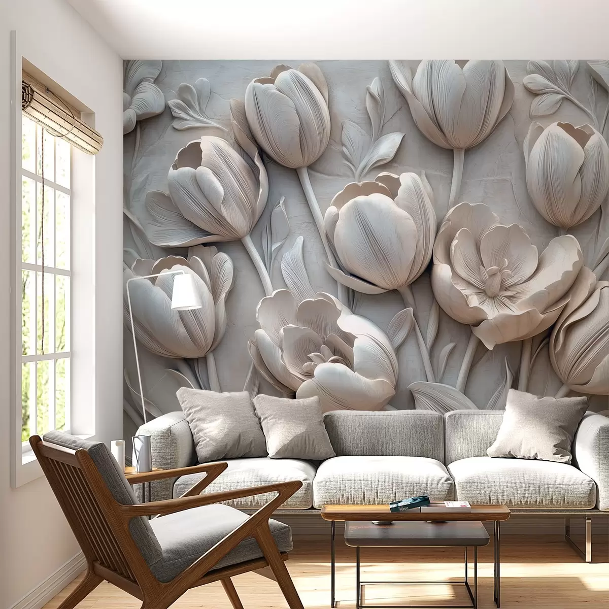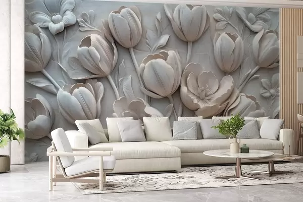 Fotomurales arte floral en 3D con elegantes tulipanes en color gris Nr. w01851v1