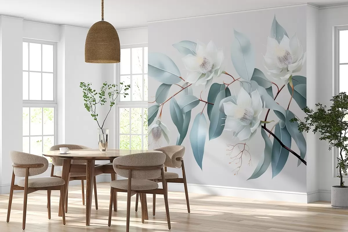 Fotomurales Flores de jazmín en la rama, acrílico, colores grises suaves Nr. w01885